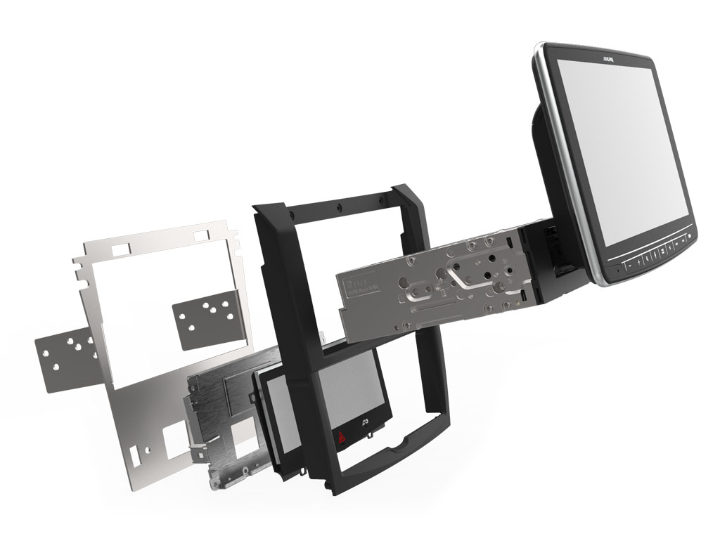 The precision installation parts included are; 7-Inch Dynamic Drive Display, Fascia, Brackets, Direct Wiring Harness, Fakra Connection and Factory Steering Wheel Controls connected via CAN/UART. The installation kit is engineered specifically for Alpine Halo9 only. For vehicles equipped with a factory reverse camera can be integrated with the Halo9, but will require optional parts and dealer installation.