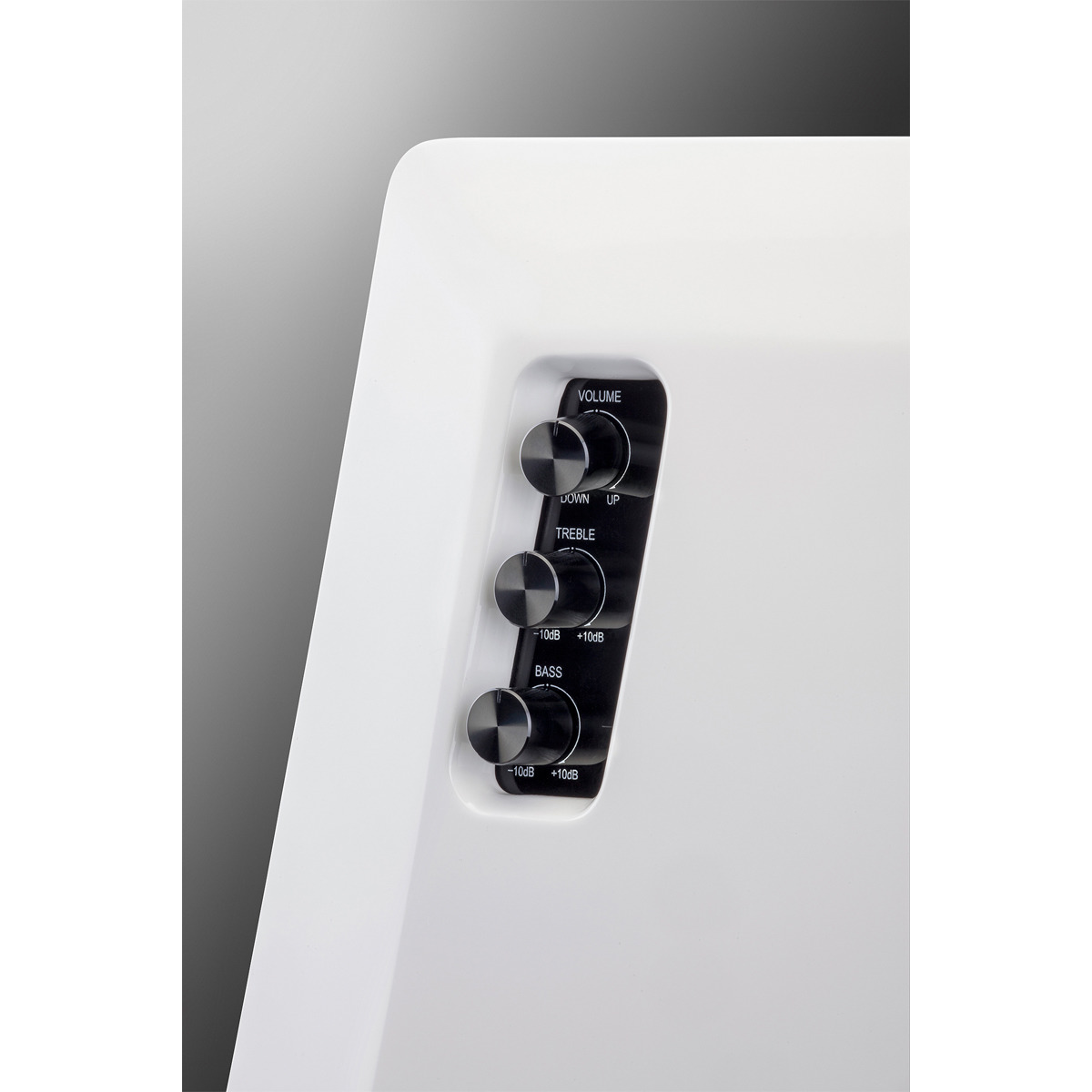 The Bluetooth stereo speaker set is fully active and its integrated amplifier, which generates 35 watts per channel, provides the power and ensures an excellent sound performance. This means an external amplifier is therefore unnecessary. The sturdy MDF cabinet, which is available in a black or white high gloss finish with angled side panels, accommodates high quality silk compound domes, a bass-midrange driver with a lightweight long-fibre paper cone that has been optimised for wide-ranging playback and a bass-midrange driver with coated steel basket for minimal vibration. Its high-power USB port means that even smartphones & tablets can be conveniently charged.